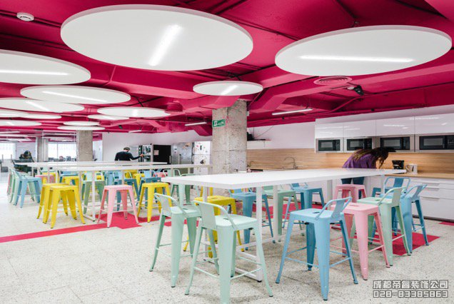色彩各異的高獨(dú)凳符合辦公室的設(shè)計(jì)風(fēng)格,頂部不同的“天空”色彩都在與主題相呼應(yīng)。整體設(shè)計(jì)非常具有創(chuàng)意性,通過(guò)不同色彩的交替營(yíng)造出不同的辦公環(huán)境。